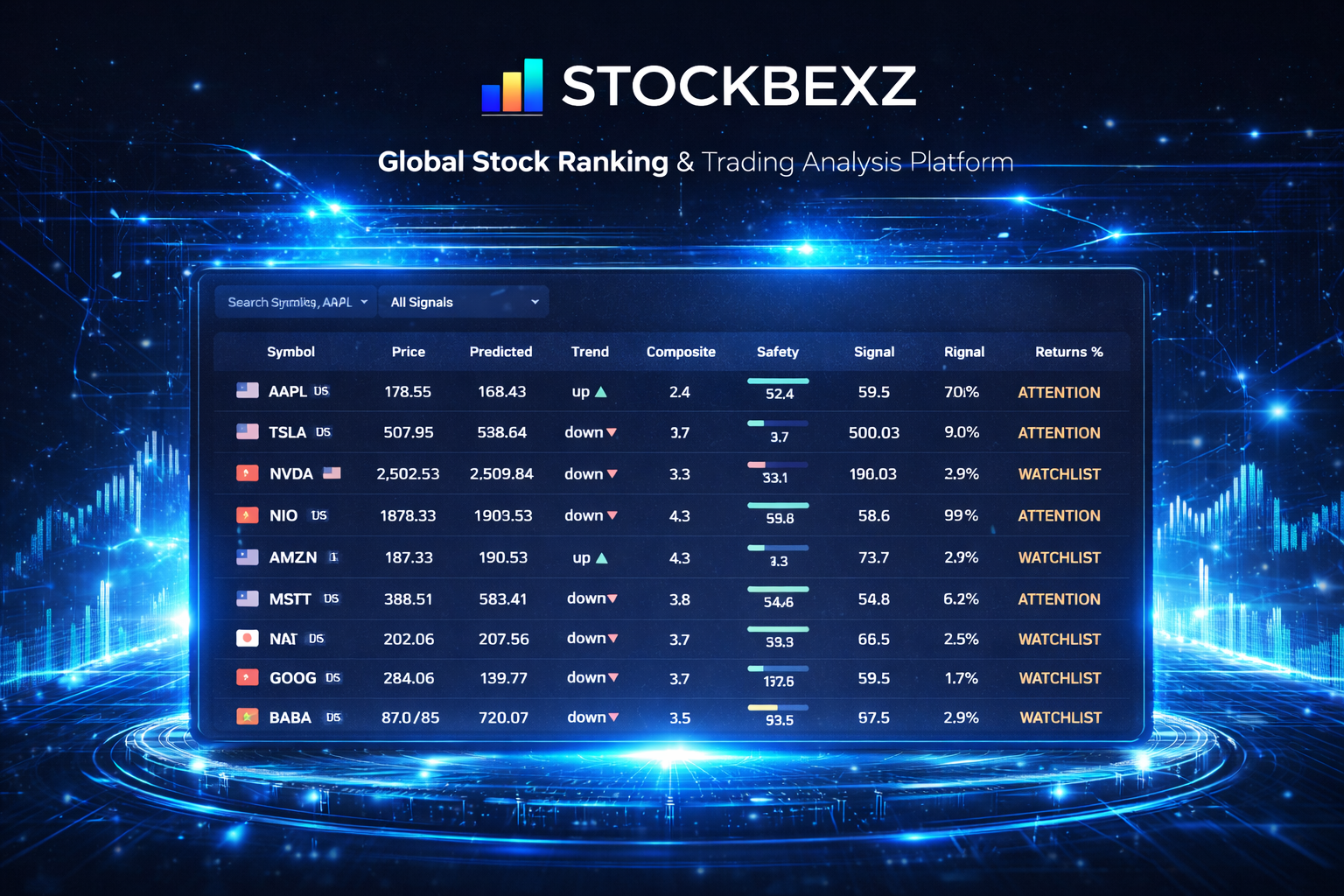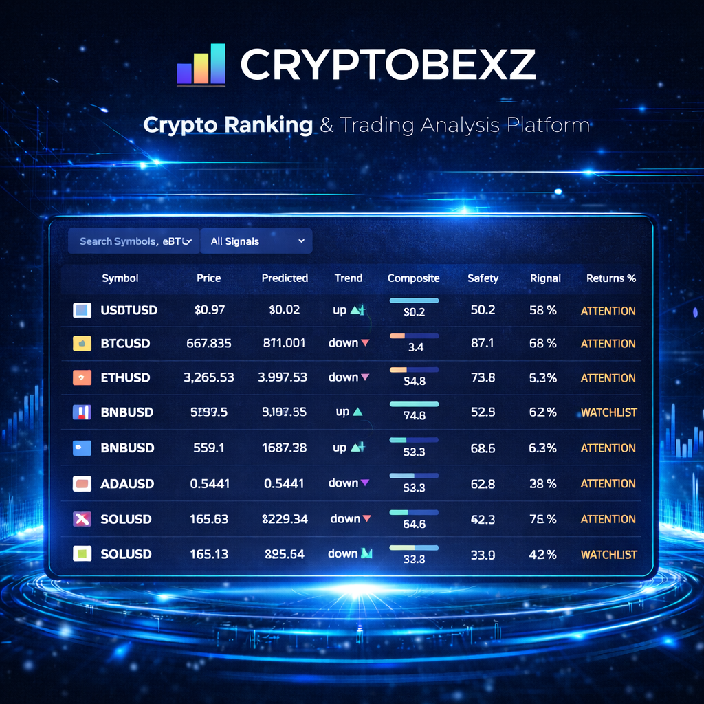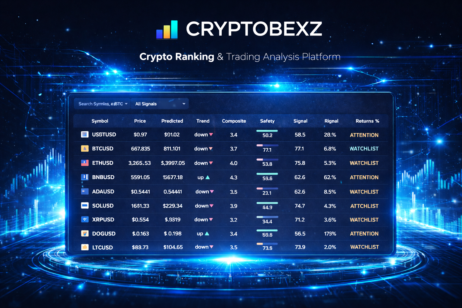 Actionable trading signals, safety scores and asset rankings.